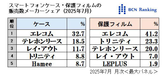スマホケースと保護フィルムの販売数メーカーシェアTOP5