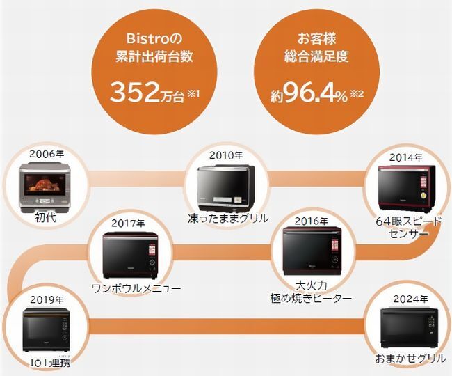 これらの取り組みが支持され、ビストロの歴代モデルの累計出荷台数は25年5月までで約352万台にも達している。24年に発売したNE-UBS10C(以下、NE-は割愛)のユーザーアンケートでは、製品の評価として「満足」「やや満足」と回答したユーザーが約96.4%だったという。