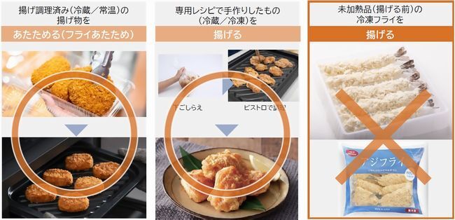 おまかせ熱風フライは市販の未加熱冷凍食品の調理に対応