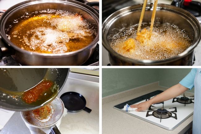 家庭で揚げ物調理をすると油の温度や火の通り具合の確認が必要で、調理中はずっとつきっきりでいないといけない。さらに、調理後も油の処理や油ハネの掃除などで手間と時間がかかる。