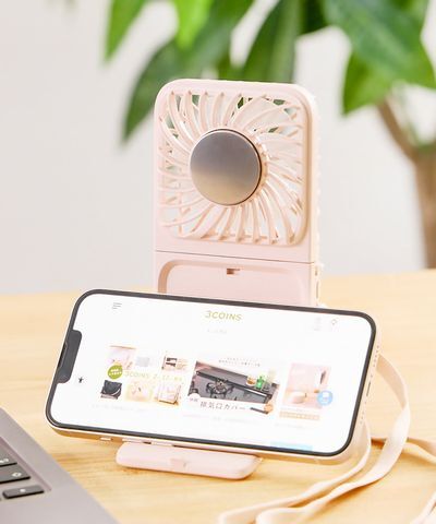 ハンディやスタンド、スマホスタンド、ネックストラップと4通りの使い方が可能で、自由自在に活用できます。また、充電式のため、外出先での暑さ対策にもってこいのグッズといえるでしょう。カラーは、ブルー、アイボリー、ピンクの3色から選べます。