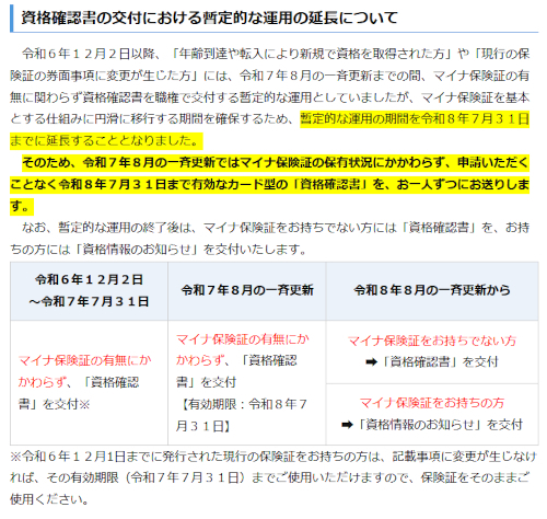 75歳以上の高齢者が加入する後期高齢者医療制度の保険証は7月31日(一部自治体除く)に有効期限を迎えるため、資格確認書の暫定的運用も当初は7月で終える予定だったが、期間延長によって、今年8月の一斉更新ではマイナ保険証の保有状況にかかわらず、従来の保険証が「資格確認書」に置き換わるだけで済んだ。対象者の方のお手元にはすでに資格確認書が届いているはずだ。