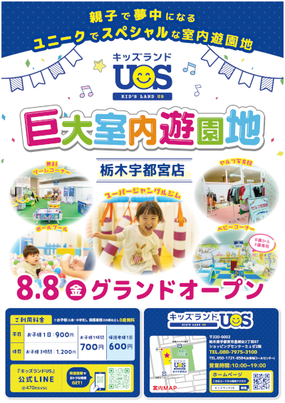ユーエスマートは8月8日に、室内遊び場「キッズランドUS 栃木宇都宮店」を豊郷台ショッピングセンターミュゼ(栃木県宇都宮市)の2階にオープンした。