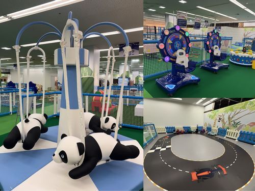 パンダのメリーゴーラウンドなど楽しい乗りものが集結
