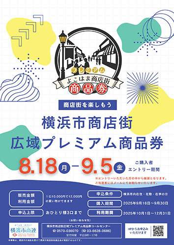 横浜市商店街総連合会(市商連)は8月18日~9月5日の期間、「横浜市商店街広域プレミアム商品券」の申し込みを受け付けている。