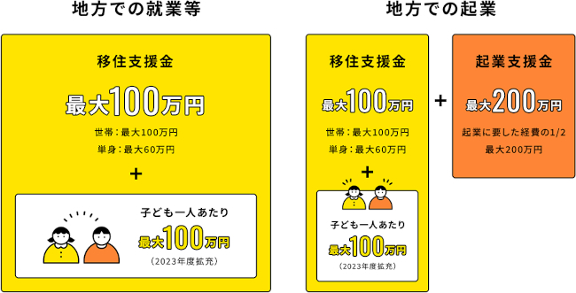 ほかにも移住先で地域課題の解決に関わる社会的事業を起業する場合に加算するため、子どもの数によって変動する分を除く移住支援金は最大300万円です。