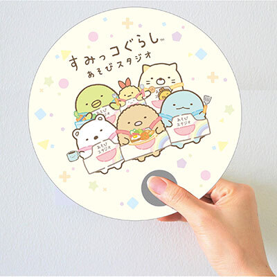 そのほか、「すみっコぐらしあそびスタジオ マークイズ葛飾かなまち」来場者には、「すみっコぐらしあそびスタジオ」オリジナルアートの「うちわ」をプレゼントする(数量限定、なくなり次第終了)。