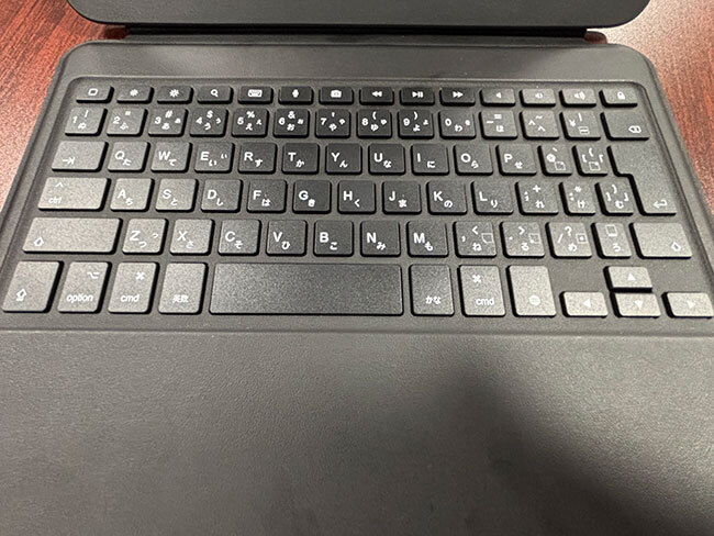 キーボードにも細かいこだわりが多くある。まず、配列はかな印字のあるApple JIS配列となっており、日本語入力に最適化されている。キーストロークは1.75mm±0.2mm、キーピッチは17±0.2mmを確保しており、たしかな打鍵感で快適なキー入力が可能だ。明るさや音量を調整するボタンも備えるなど、使い勝手で手を抜いていないのも好印象だ。