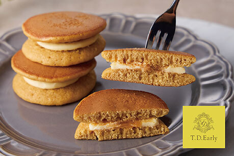 今回、販売が開始となったパンケーキ~キャラメル~は、T.D.Earlyのロングセラー「パンケーキ~メープル~」の新ラインアップ。ふわふわに焼き上げたパンケーキに、甘く香ばしい風味とまろやかな甘さが魅力のキャラメルクリームを贅沢にサンドしており、手のひらにそっと収まる上品なサイズは、紅茶とともに気軽に楽しめる。キャラメルの芳醇な香ばしさとやさしい甘みが、ミルクティーはもちろんアールグレイやダージリンにも合う。