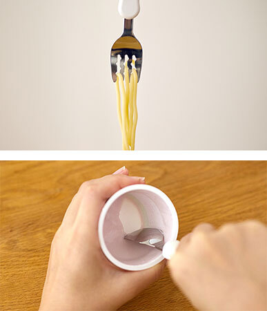 「ギザギザの溝が具材に絡みやすい」「最後までキレイに食べられる」と好評を博しているフォークとスプーンのセットで、フォークには溝がついているため具材が落ちにくく、つるつるして食べづらい麺類もよく絡む。スプーンは、隅々までキレイに食べられる形状で、平らな面がお皿にフィットしてキレイにすくえる。