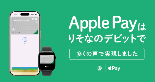 りそな銀行、埼玉りそな銀行、関西みらい銀行、みなと銀行は、「りそなデビットカード(Visa)」が9月4日から「Apple Pay」への対応を開始したことを記念し、最大1000円が当たるキャンペーンを開始した。期間は10月31日まで。