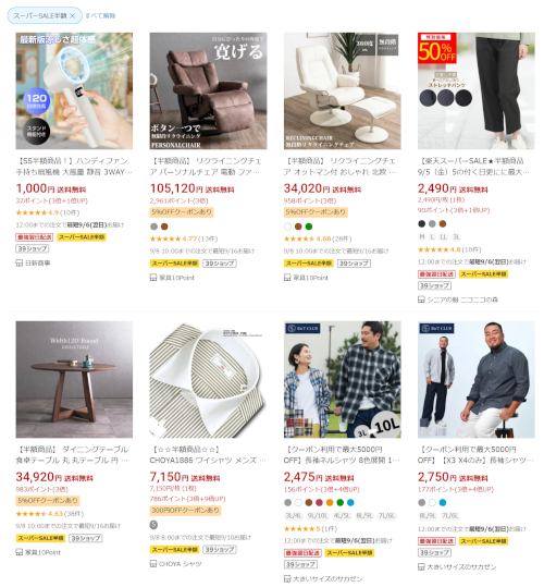 今、開催されている楽天スーパーセールは以下です。