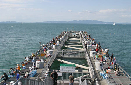 大阪府最南端の岬町にある「とっとパーク小島」は、海釣りを楽しめる道の駅です。海に突き出た海釣りデッキ(有料)と展望デッキ(無料)があり、開放感抜群の海釣りを楽しめます。