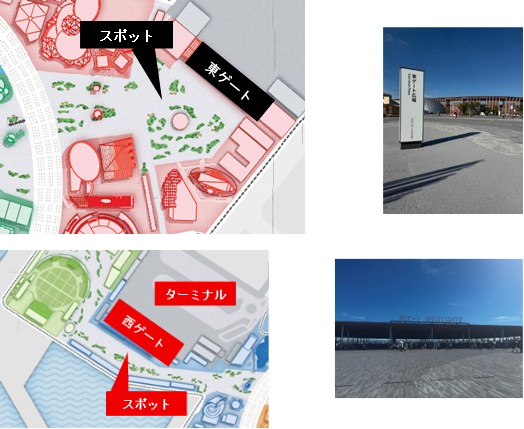 来場者2025万人達成記念ARスポットは東ゲート付近(上)と