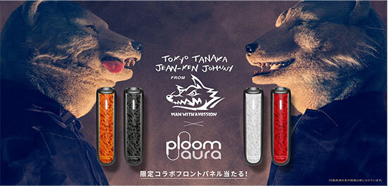 「Tokyo Tanaka & Jean-Ken Johnny コラボキャンペーン」では、「Ploom AURA×Tokyo Tanaka & Jean-Ken Johnnyコラボフロントパネル:KIBA」(A賞:Orange、B賞:Red、C賞:Black、D賞:White)と、「EVO」5銘柄、「Ploom AURA」が入っている「Ploom AURA×Tokyo Tanaka & Jean-Ken Johnny from MAN WITH A MISSION 限定ボックス 01」~「Ploom AURA×Tokyo Tanaka & Jean-Ken Johnny from MAN WITH A MISSION 限定ボックス 04」がそれぞれ抽選で250名、「Ploom AURA×Tokyo Tanaka & Jean-Ken Johnny from MAN WITH A MISSION オリジナルアッシュトレイ」2種がそれぞれ抽選で1500名、「Ploom AURA×Tokyo Tanaka & Jean-Ken Johnny from MAN WITH A MISSION オリジナル携帯灰皿」2種がそれぞれ抽選で2000名に当たる。