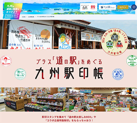 九州各地の「駅印」を集められる「九州駅印帳」に、30の道の駅を加えたコラボ企画「プラス道の駅をめぐる九州駅印帳」も開催中です。鉄道駅・道の駅の駅印を50個以上集めるか、道の駅の駅印30個取得で、プレゼント企画に応募できます。