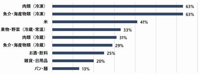 「肉類(冷凍)」と「魚介・海産物類(冷凍)」が最多に