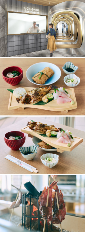 「囲炉裏食堂うずしお」の店舗、および提供メニューのイメージ