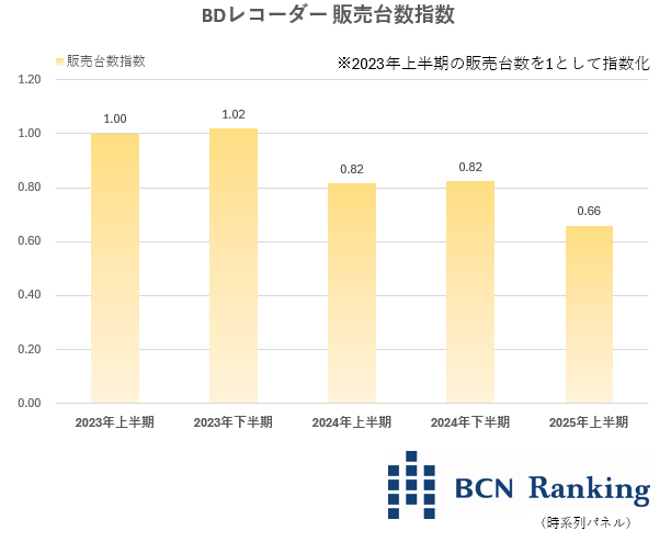 直近の25年上半期はブルーレイレコーダーの販売台数は大きく落ち込んでいる