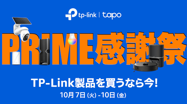 ティーピーリンクジャパン(TP-Link)は、Amazon.co.jpにおいて10月4~7日の期間に開催されている「Amazon プライム感謝祭」(10月4~6日は先行セール)において、最新のWi-Fi 7ルーターやスマートホーム製品といったアイテムを、最大40%オフで販売している。