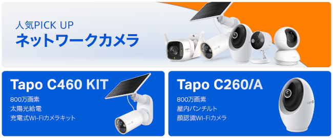 ネットワークカメラでは、日本国内のシェア・ナンバーワンを誇る「Tapo」シリーズをセール価格で販売している。