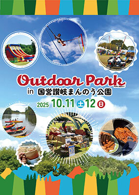 「アウトドアパーク」は、公園財団が開催するアウトドア総合イベントで、全国7カ所の公園を舞台に充実のアクティビティ、ワークショップ、フードブースにショッピングと、公園を1日楽しめるイベントとなっている。アウトドアパークin讃岐まんのう公園2025では、開放感溢れる芝生広場にバンジートランポリンやカヤック、ラジコンカートといったアクティビティや、屋外でモノづくりやボディペイントなどを楽しめるワークショップを実施する。また、芝生広場に隣接した飛竜池ではカヤックの体験も楽しめる。