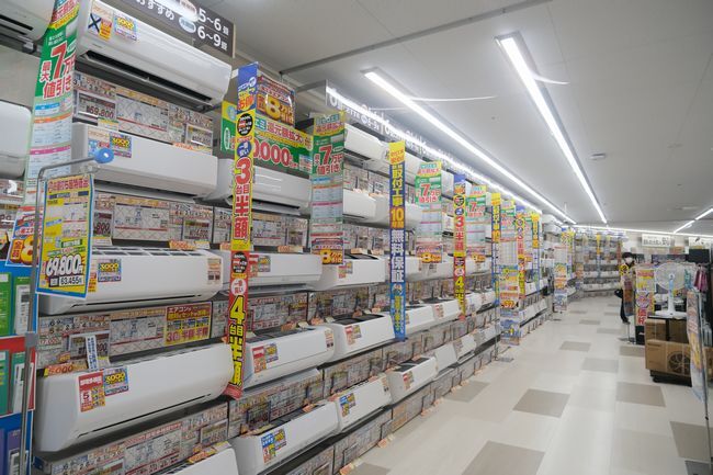 エアコンのコーナー 限られたスペースながらラインアップは多そうだ