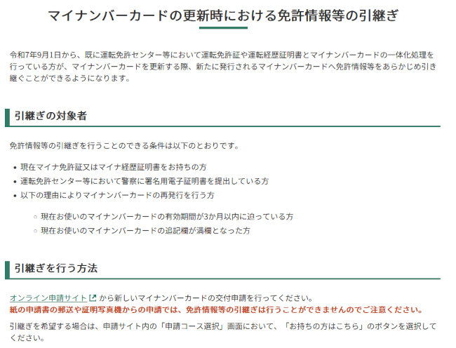 マイナンバーカードの更新時における免許情報などの引き継ぎについて