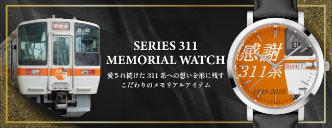 JR東海リテイリング・プラスは10月27日10時~11月26日11時の期間、6月に惜しまれつつ引退したJR東海の近郊型電車311系をイメージした「311系メモリアルウォッチ」の受注を、311本の数量限定でJR東海MARKET内で運営している公式オンラインショップ「PLUSTA ONLINE STORE」にて開始する。本体カラーはゴールド、シルバー、ピンクゴールド、ブラックの4色、ベルトのカラーはブラウン、ブラックの2色。価格は3万1100円で、支払いはクレジットカード決済のみとなる。
