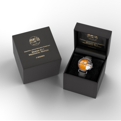 さらに、「311系メモリアルウォッチ」のために特別にデザインされた、専用収納ケースも用意している。特別感を演出する黒をベースとして、特別ヘッドマークをメインに英文字で入れられたメモリアルウォッチの表記がゴールドで施され、収納はもちろん展示用にも使える。