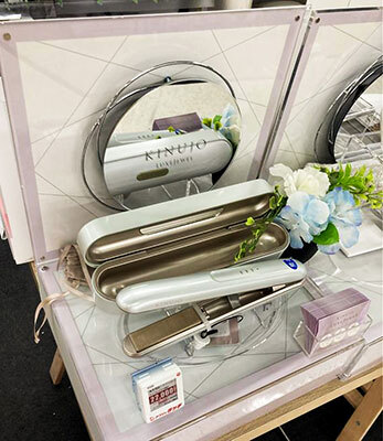 「重量は約237gで軽いです。160℃まで約70秒と立ち上がりが速いので、急ぎのお直しにもピッタリです!また、シルクプレートを搭載しているので、水蒸気爆発を抑えて潤いをキープします。ミラー付きのケースが付属しているので、持ち運びしやすいのも嬉しいポイントです」。
