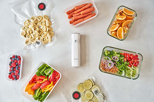 我が家では、ツヴィリングの真空保存機「FRESH & SAVE(フレッシュ&セーブ)」(真空ポンプ8250円、コンテナやパックは別売)を愛用中。使用して余った野菜や果物はコンテナで保存したり、多めに作っておいた蒸し野菜を真空パック保存で冷凍し、必要な分だけ都度ペーストにしたりしています。