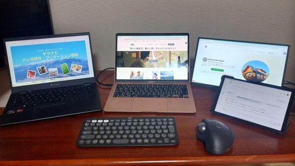 PC2台(WindowsとMacBook)、モバイルディスプレー、外付けキーボード、トラックボール、ノイズキャンセリングヘッドセット、タブレット端末といったところです。持っていったものの、使ったもの、使わなかったものがありました。今後の備えとして整理しておきます。