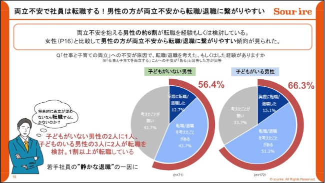 「両立不安」を抱える男性は転職や退職につながりやすい