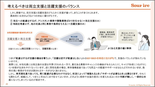 企業に対して状況に応じた両立支援と活動支援のバランスを提言