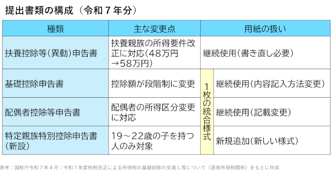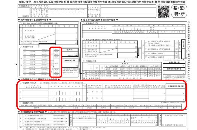 もう一つは、「特定親族特別控除申告書」という新しい書類である。聞き慣れないが、これは19~22歳の子どもがいる家庭向けの新制度だ。大学生の子を持つ親などが対象で、申告すると最大63万円の控除が受けられ、その分、負担が軽くなる。この申告書は、該当する人だけが会社に申告書を出せばよく、該当しない人は何も書かなくていい。