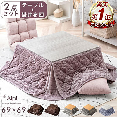 「アルピ」は、2025年に「楽天市場」内のこたつジャンルにおいて、デイリー・週間ランキング1位を獲得した人気商品で、テーブルに暖かいコーデュロイ生地のこたつ布団が付属したセット商品。天板はリバーシブル仕様で、季節に合わせて手軽に模様替えが可能となっており、インテリアの雰囲気も簡単に変えられる。