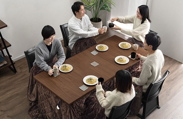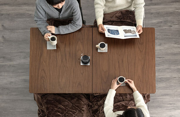 こたつとしてだけでなく、オフシーズンには木目の美しさがインテリアのアクセントとなって、テーブル単体でも空間を引き立てる。