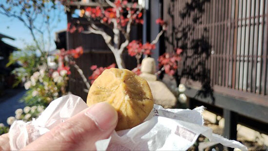 馬籠宿で栗きんとんを食べ歩き
