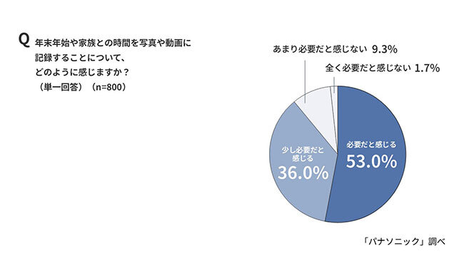年末年始や家族との時間を、写真や動画に記録することについて、どのように感じるかを尋ねたところ、「必要だと感じる」と「少し必要だと感じる」を合わせた割合は89.0%を占めた。