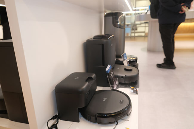 ──本当だ。上のやつはすごく明るいですね。確かにこれだと、製品の違いが良くわかりますね。このロボット掃除機も試せるんですか?