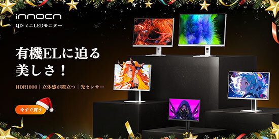 Innocn(イノセン)は12月15~23日23時59分の期間、Mini LED搭載ディスプレーを特別価格で販売する、年内最後のビッグセール「INNOCN Xmasフェス」を、Amazon.co.jpにて開催している。