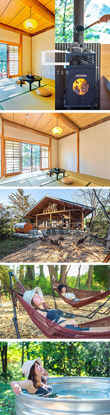 「SHELTER.」ブランドは一棟貸ヴィラとして、「SHELTER.都留」(山梨県都留市)、「SHELTER.君津」(千葉県君津市)、「SHELTER.道志」(神奈川県相模原市)、「SHELTER.日光」(栃木県日光市)を提供している。