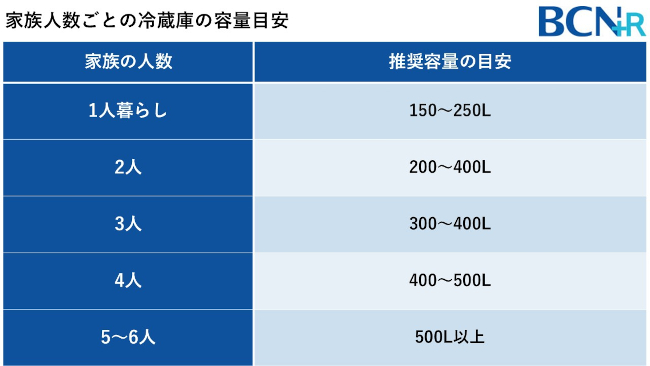 買い置きが多い家庭や、作り置きをよくする家庭は、上記よりワンサイズ大きいモデルを選ぶと余裕を持って使えます。