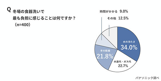 冬場の食器洗い、「水の冷たさ」がもっとも負担に