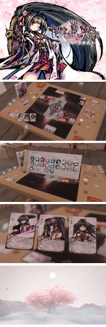 両者がデッキを構築した後、格闘ゲームのような間合いや防御の概念を持つ「桜花決闘」によって勝敗が決せられる。