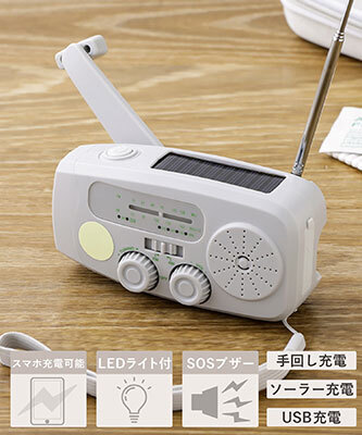 ・手回し式スマホ充電ラジオライト
