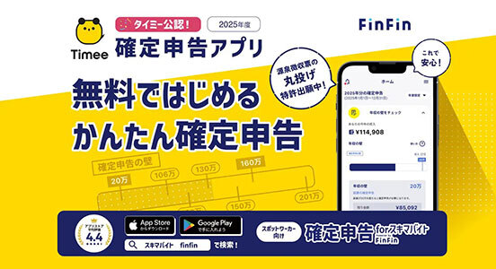スキマバイトサービス「タイミー」と、スマホ会計アプリ「FinFin」を提供する会計バンクは、スポットワーカーの確定申告を支援する取り組みを強化している。会計バンクが提供する「確定申告 for スキマバイト Powered by FinFin」は、2025年度の「タイミー公認 確定申告アプリ」として正式採用された。確定申告に不安を感じているスキマバイト利用者でも、安心して申告準備を進められる環境が整った。