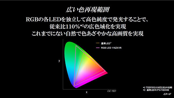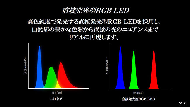 RGBの独立発光で再現できる色域が広がり、より自然な映像表現を実現