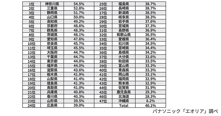 春の訪れとともに本格化する花粉シーズン。パナソニックが全国の20~60代男女5463人を対象に実施した調査によると、花粉に「とても困っている」「やや困っている」と答えた人は、都道府県によっては、2人に1人以上にのぼることが分かった。